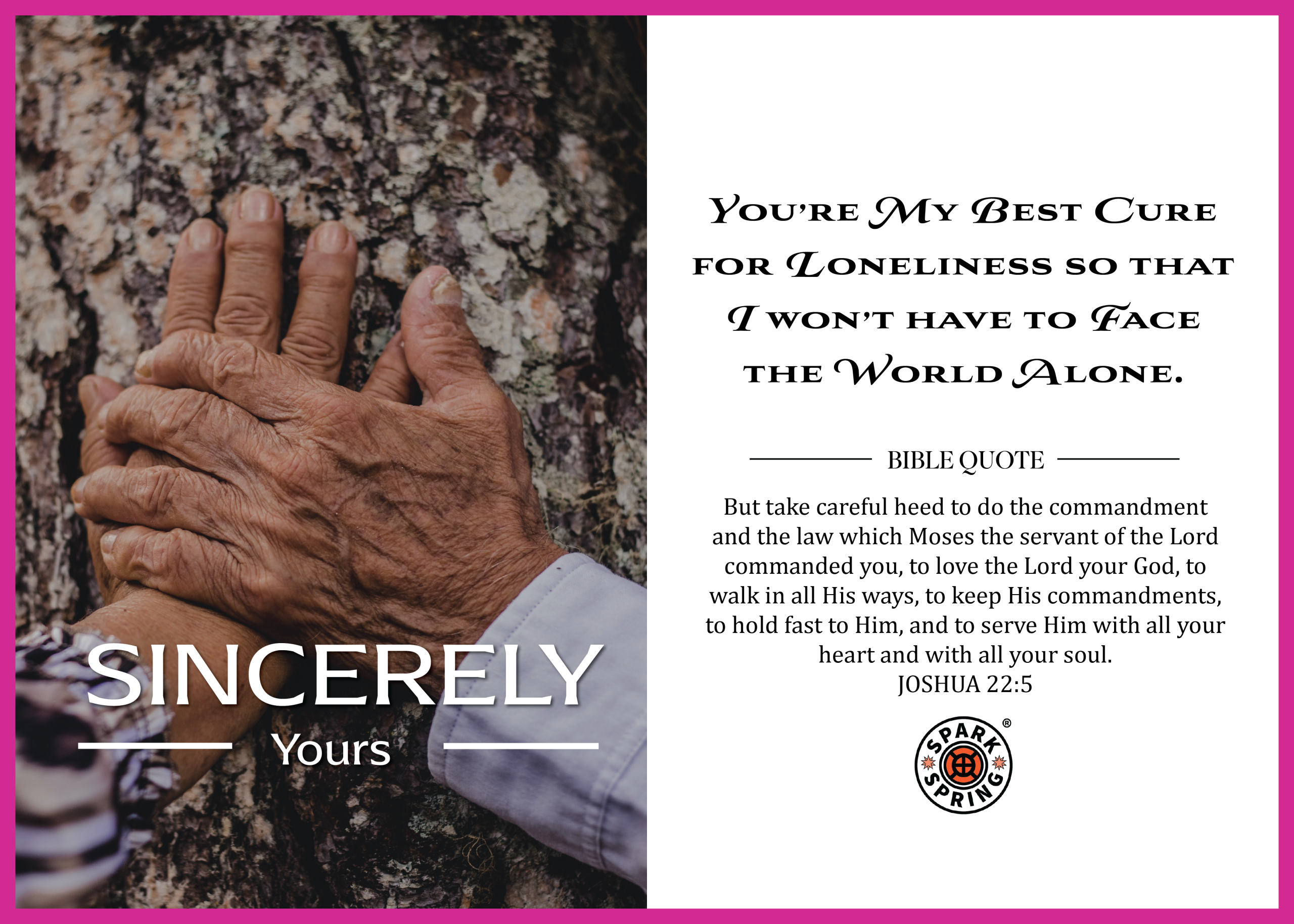 Sincerely Yours is a heartfelt Spring Virtual e-Card designed for everyday expressions of love and romance, including Valentine’s Day and anniversaries. Featuring a contemporary message paired with a Christian-inspired spiritual undertone and a Bible verse from Joshua 22:5, it’s perfect for a Christian friend or loved one. This eco-friendly, extremely affordable digital card offers instant delivery, supports charitable causes, and is proudly created by Spark + Spring® It Rhymes With Greetings™, your official source for thoughtful, heartfelt greetings. $1.99 -